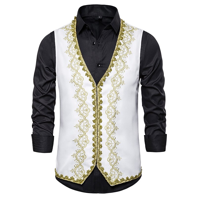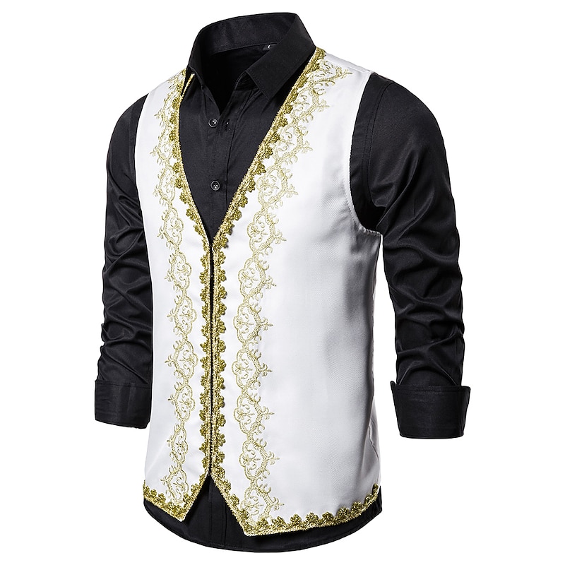Men's Vest Waistcoat Christmas Wedding Party brand-new Year Medieval Renaissance Summer Spring Vintage Style Embroidery Polyester Cosplay Color Block V Neck Skinny Black White Red Vest