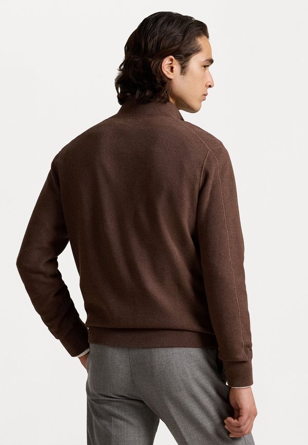 MESH KNIT COTTON FULL ZIP SWEATER - Cardigan - dark roast melange 4