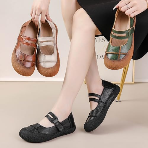 HOT ! Women's Arch Support Mary Jane Flats,Comfort Vintage Leather Round Toe Non-Slip Soft Sole Orthopedic Casual Dress Shoes