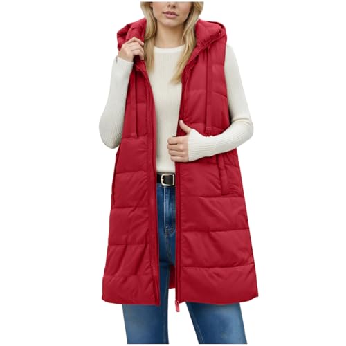 HOT ! Womens Long Puffer Vest Winter Fashion Quilted Hooded Sleeveless Jacket Casual Zip Up Puffy Gilet Vests Outerwear