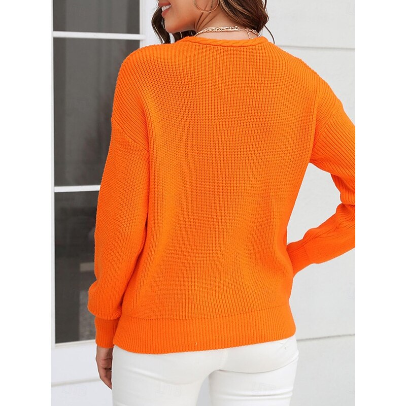 Highlights [Fabric] Crafted from high-quality core spun yarn, this women's sweater offers a breathable and comfortable knit feel, perfect for transitional weather in spring, fall, and winter. The fabric ensures warmth while maintaining breathability, ideal for diverse settings. [Fit] Designed with a loose fit for a relaxed silhouette, the sweater features long sleeves for added warmth and a flattering V-neck that enhances the neckline. Its standard fit allows for easy layering and ensures comfort throughout the day. [Design Highlights] The sweater boasts a trendy crochet knit pattern, enhancing the texture with a braided design. The decorative ribbed hem adds a sophisticated touch, while the solid color palette offers versatility in styling, available in black, orange, pink, and light blue. [Occasions] This versatile sweater is suitable for various occasions, from professional work environments to casual outings. Whether you're heading to the office or enjoying a weekend brunch, this sweater combines fashion and functionality seamlessly. [Size Notice] Available in sizes S, M, L, and XL, customers are advised to select their usual size for the best fit. Perfect for everyday use. top-grade materials and excellent craftsmanship ensure long-lasting durability.