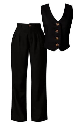 • ❤Casual Sexy Women Two Piece Outfits Sets: Feature a Womens Vest Paired With Wide Leg Pants For a Sophisticated Look. The Button Closure On The Waistcoat Adds a Touch Of Refinement, While The Wide Leg Design Of The Pants Provides a Flattering Silhouette That Elongates Your Legs.
