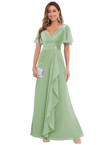 • Design: Short Sleeves V Neck Pleated Chiffon A Line Mother of the Bride Groom Dress Long Formal Dress Evening Party Gown for Women.