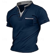 More information about Men's Henley Shirt Tee Top Short Sleeves Plain Fashion Designer Basic Front Pocket V Neck Vacation Street Going out Summer Sillver Gray Navy-blue Black 1# Henley T-Shirt
