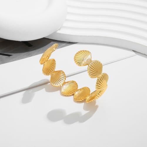 • Trendy Gold Shell Cuff Bracelets: WOWORAMA gold shell bracelets for women feature a stunning scallop shell shape with a stripped texture, a statement piece that will surely catch everyone's attention.