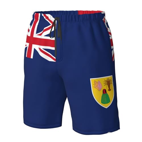 HOT ! nanger Flag of The Turks and Caicos Islands Men'S Swim Trunks Quick Dry Shorts Bathing Suit with Pockets, for Beach, Summer