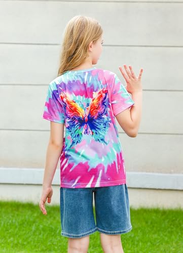 SunFoucs Girls Kids Shirts Size 5-12 Tie Dye Casual Tshirt Short Sleeve Crewneck Tee Top 6