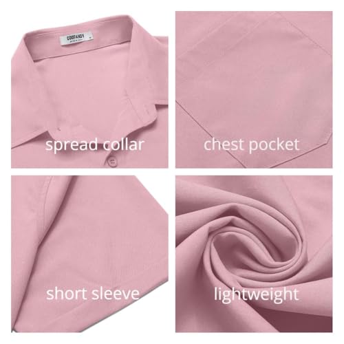 • Trendy Yet Timeless: Short sleeve shirt offers a sleek, modern look that's also timeless. With a sharp collar, sleek button-down design, and a range of solid colors. It's the perfect blend of fashion and function, ensuring you look sharp without sacrificing comfort, and it fits seamlessly into any wardrobe