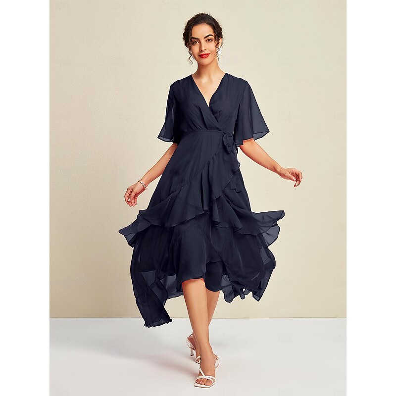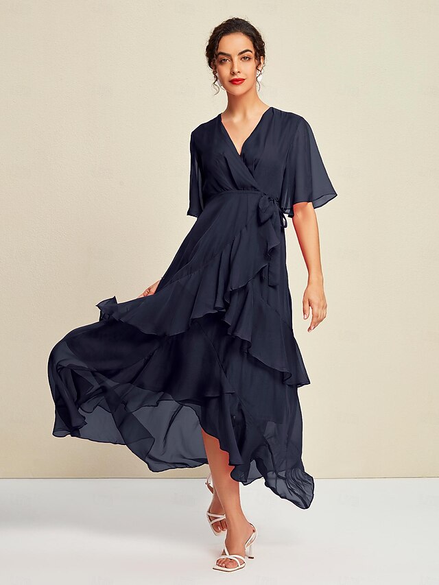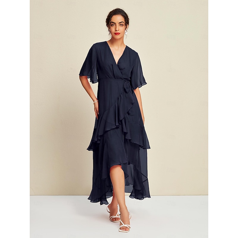 HOT ! Women's Maxi Dress Chiffon Solid Mismatched Ruffle Sleeve Wedding Guest Elegant Spring Summer Fall
