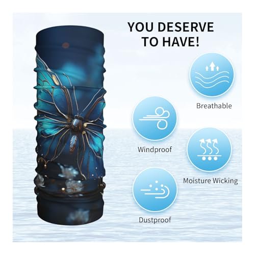 Neck Gaiter Face Mask UV Protector Scarf Breathable Windproof Face Cover Blue Butterfly and Moon Balaclava Summer Cooling Gator Cover Seamless Bandana Head Wrap for Men Women 5