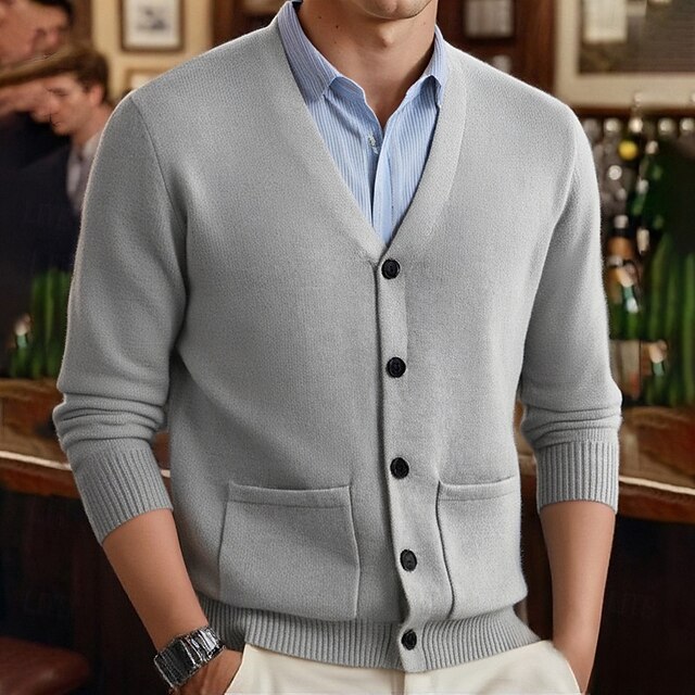 More information about Men's Cardigan Sweater Cropped Sweater Knit Sweater Ribbed Knit Regular Tops Pocket Plain V Neck Fashion Classic Vacation Daily Wear Clothing Apparel Fall Winter Wine Red Black M L XL