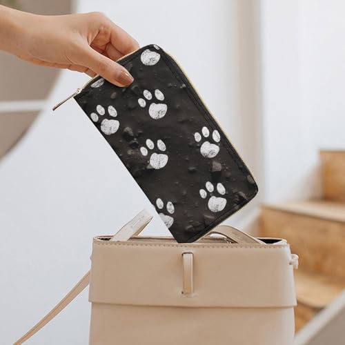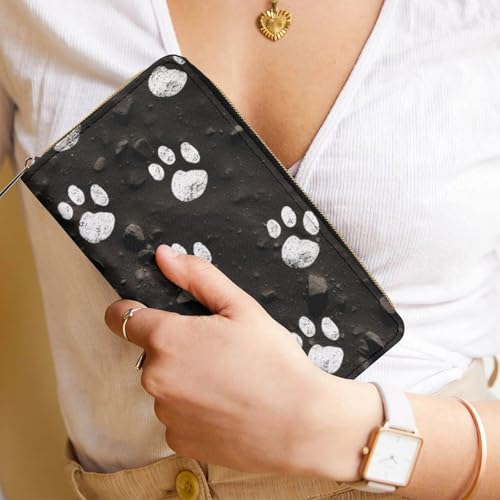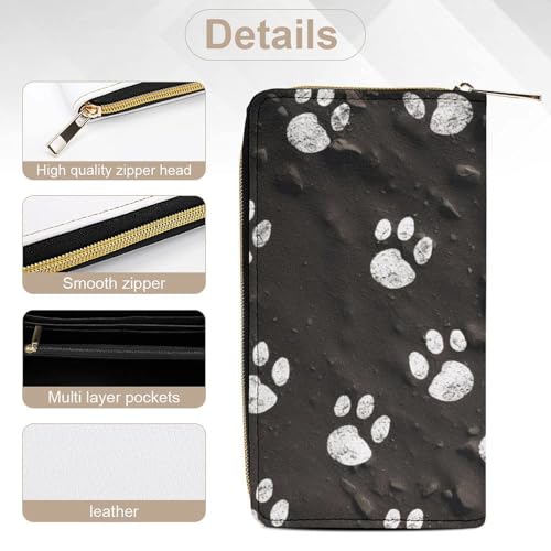 HOT ! Dog Paw Prints Print Long Wallet for Women Men PU Leather Card Holder Organizer with Zipper Coin Pocket & Cash Slots