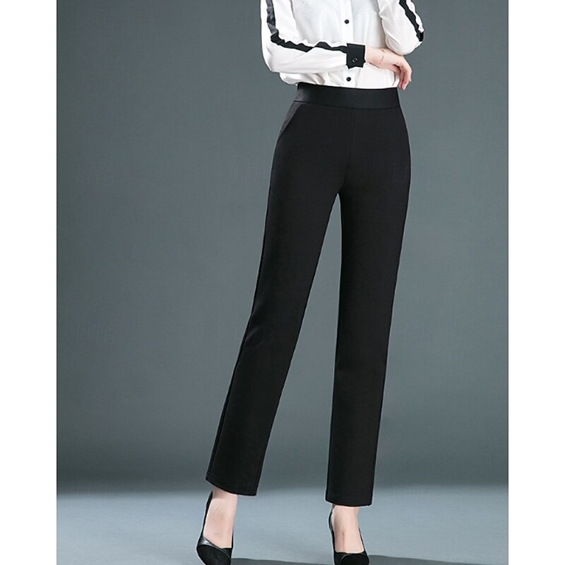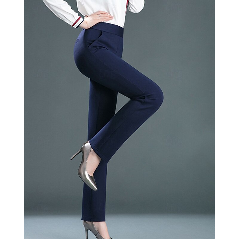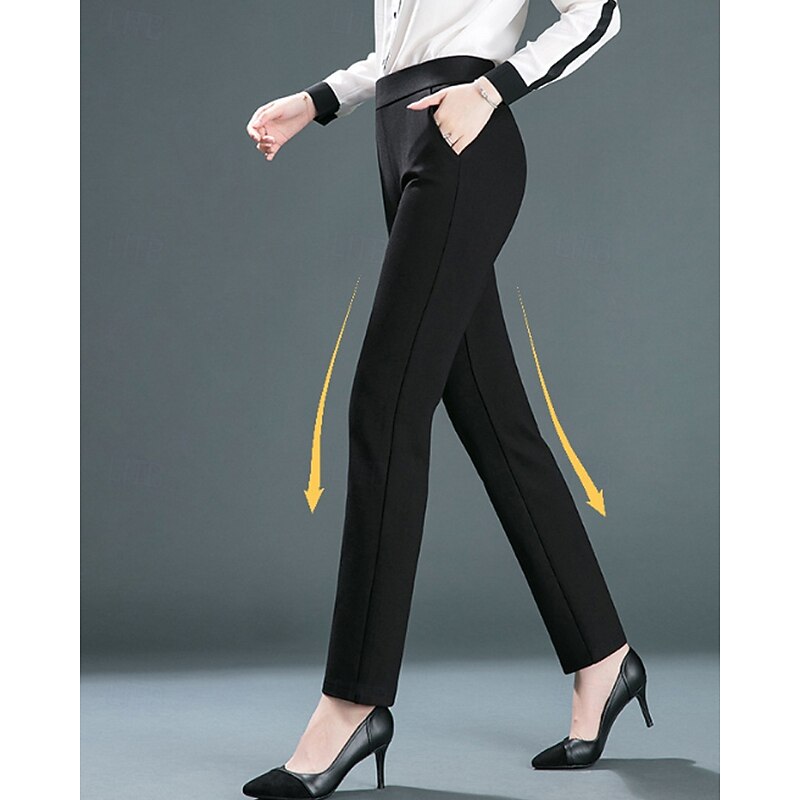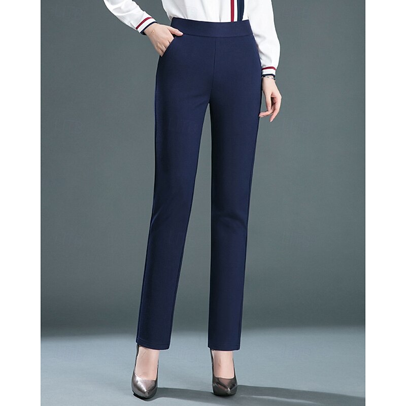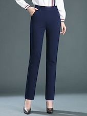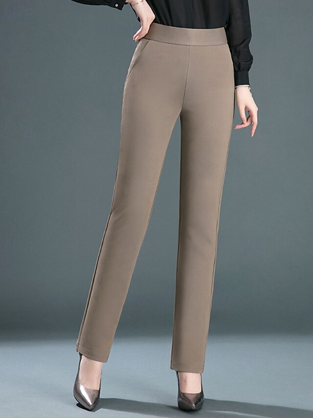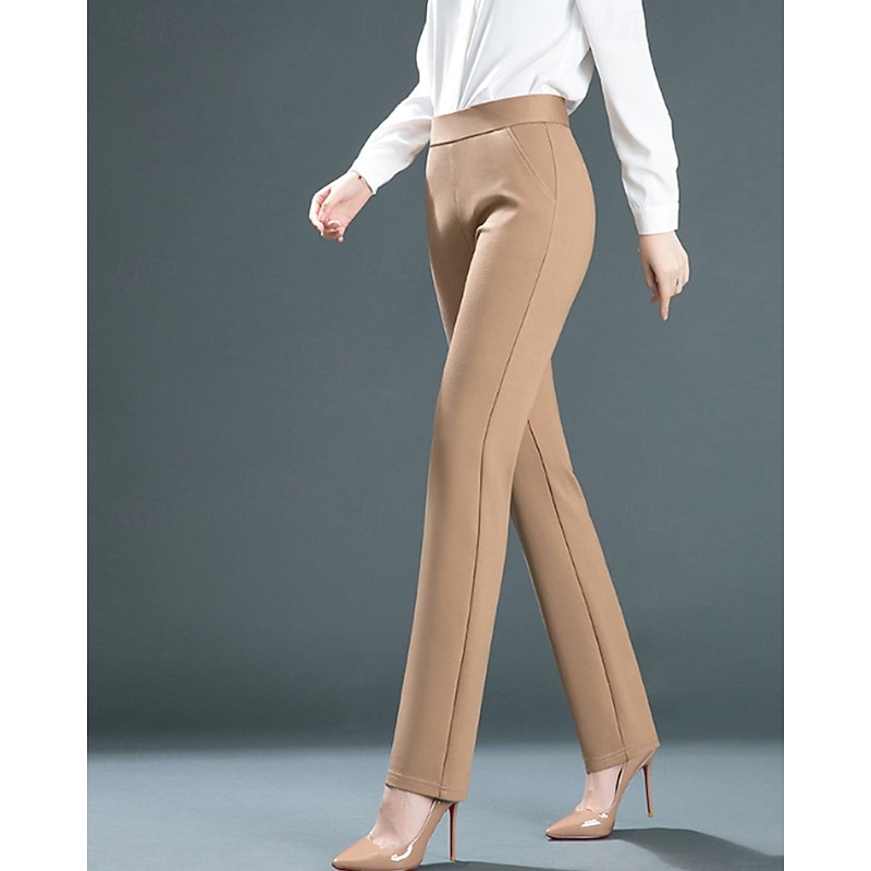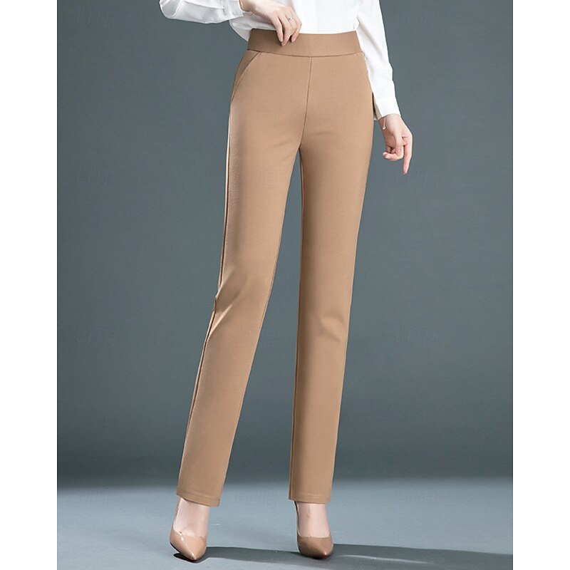 More information about Women's Chinos Straight Vacation Vintage Streetwear Full Length Medium Waist Plain Pocket Elastic Waist Comfortable Micro-elastic Outdoor Vacation Daily Camel Black Dark Navy Khaki Spring Fall Winter