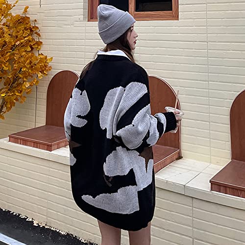 Men Oversized Knitted Sweater Pullover Black Japanese Anime Cartoon Print 4