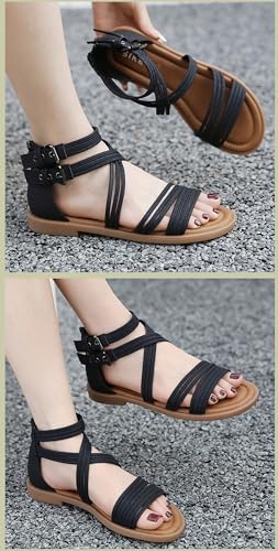 Women's Fashion Open Toe Sandals Gladiator Strappy Flat Sandals Back Zip Up Sandals Summer Beach 6