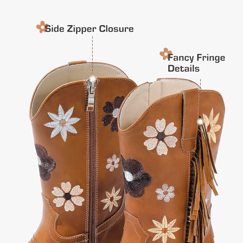 Girls Cowboy Boots Toddler Cowgirl Floral Embroidered Fringe Little Kids Western Boots Girl Riding Boot Birthday Party 5