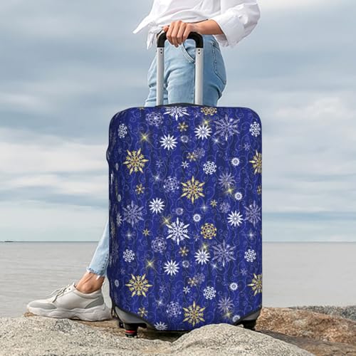 Golden Snowflakes Royal Blue For Travel Luggage Cover Suitcase Protector Fits 18-32 Inch Travel Luggage Protector Elastic Luggage Anti-Scratch Suitcase Cover 7
