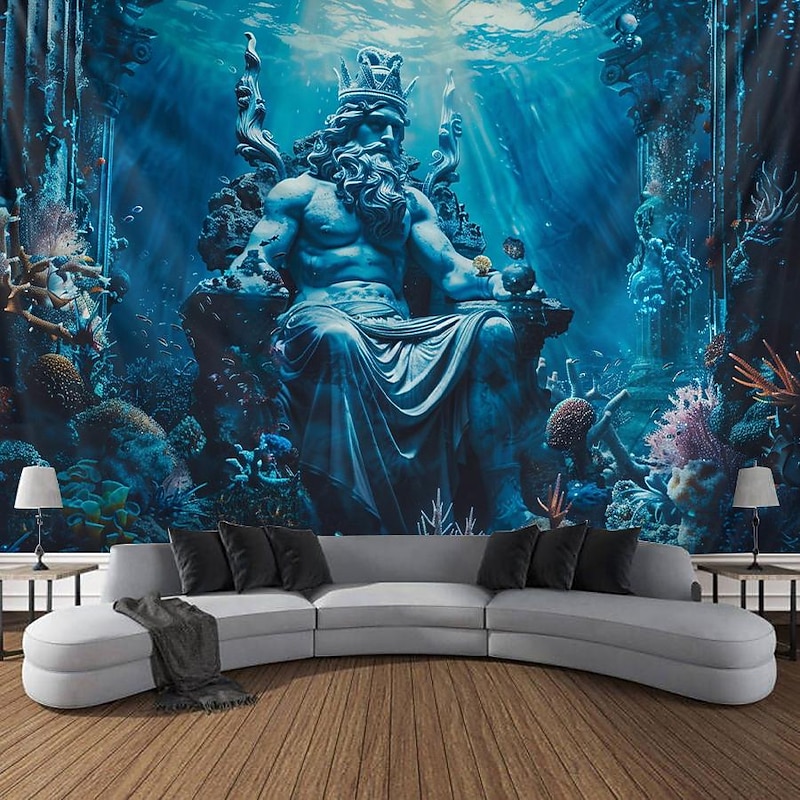 sought-after ! Poseidon God Greek Mythology Hanging Tapestry Wall Art Large Tapestry Mural Decor Photograph Backdrop Blanket Curtain Home Bedroom Living Room Decoration