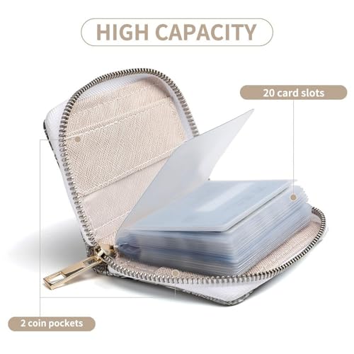 • Dimensions: Measures 4.5x3.15 inches, with 20 PVC card slots and 2 coin pockets for ample storage.