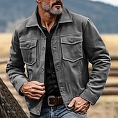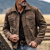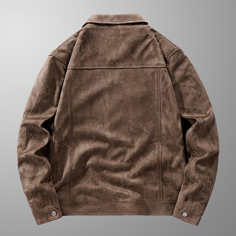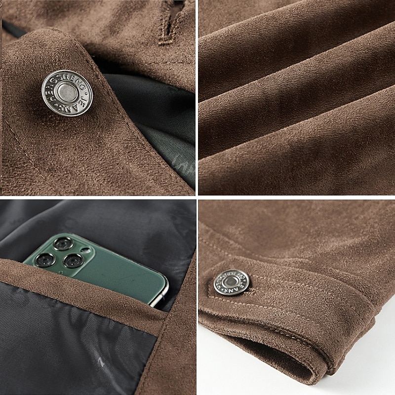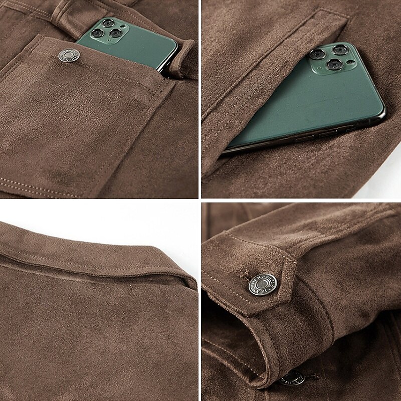 More information about Men's Faux Suede Jacket Cargo Jacket Casual Jacket Vacation Daily Warm Pocket Fall Winter Plain Fashion Classic Lapel Regular Black Khaki Coffee Gray Jacket