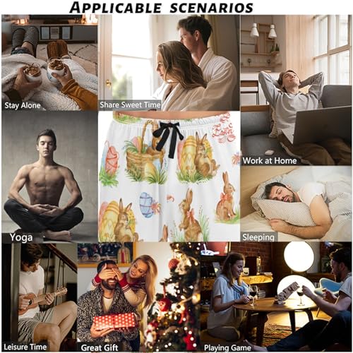Visesunny Men's Pajama Pants Animal Rabbit Egg Cotton Sleepwear Lounge Pants 3