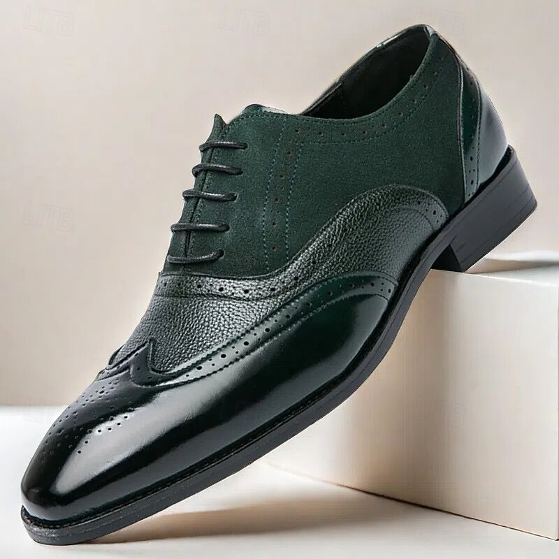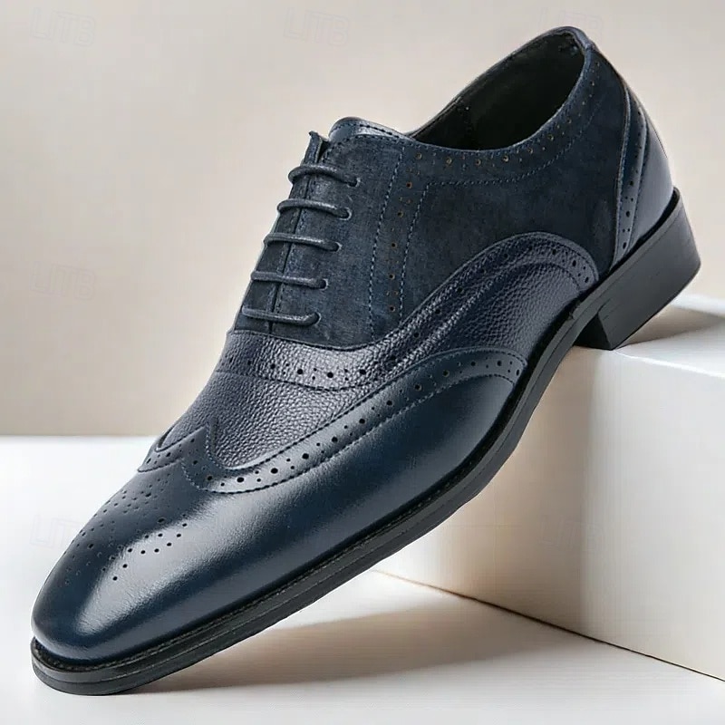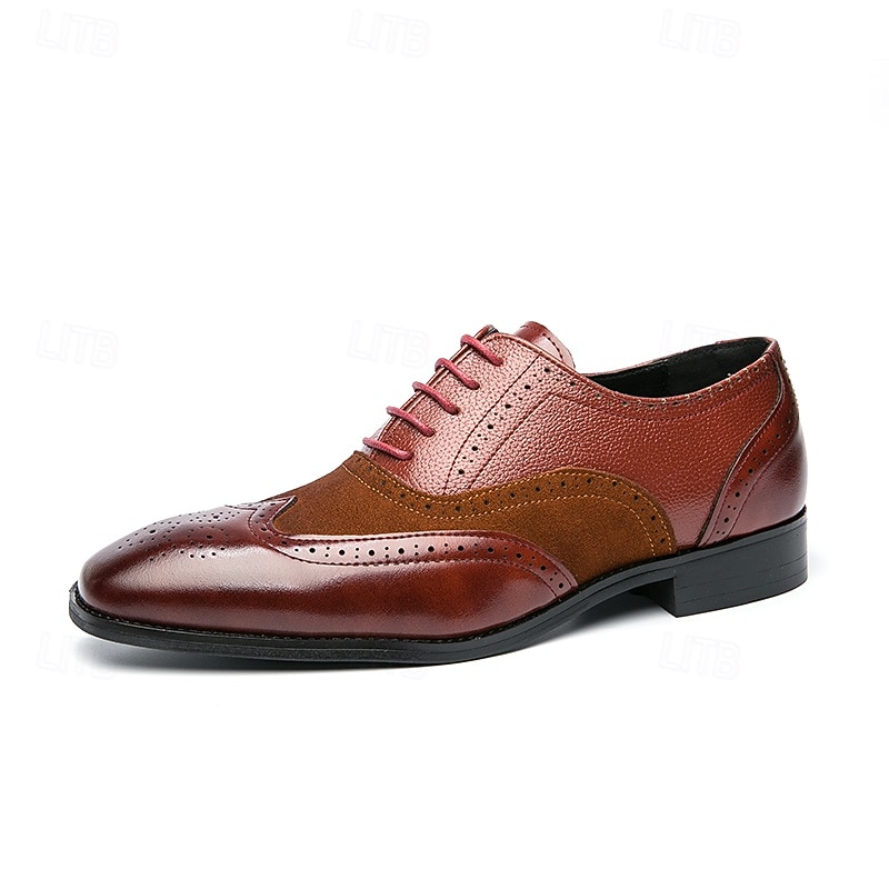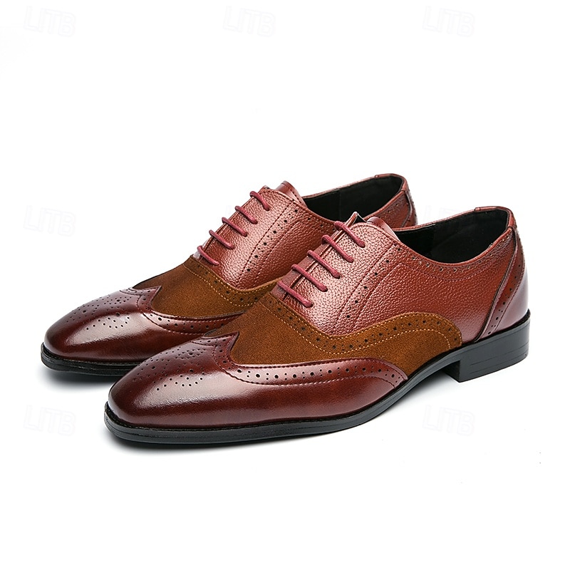 HOT ! Men's Two-Tone Brogue Oxford Shoes – Suede and Faux Leather Combination with Wingtip Detailing for Business and Formal Occasions
