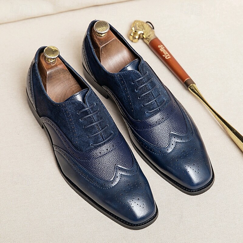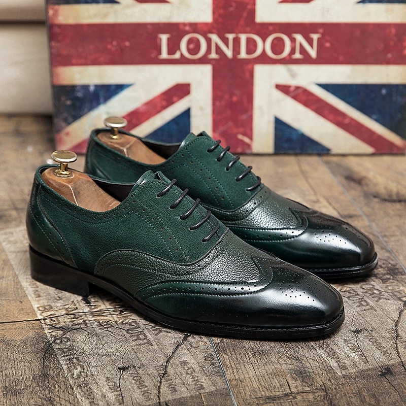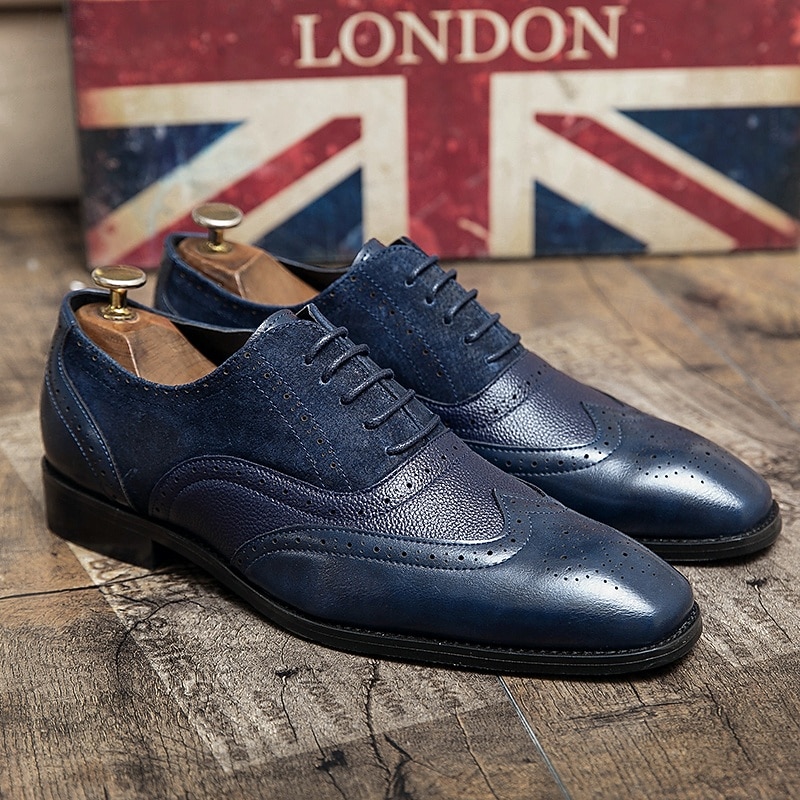 Men's Two-Tone Brogue Oxford Shoes – Suede and Faux Leather Combination with Wingtip Detailing for Business and Formal Occasions 22