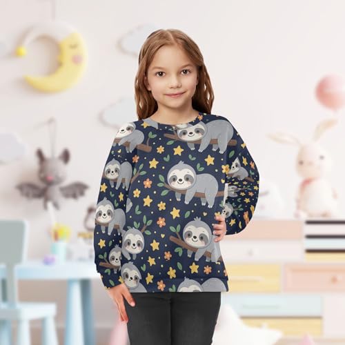 JUNZAN Cute Sloth Flowers Blue Big Girls Sweatshirt Hoodie Long Sleeve Sweatshirts for Boys Athletic 4T 5