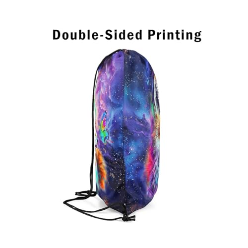 Erosebridal Fox Draw String Back Bag,Hand Drawn Kawaii Fox Drawstring Backpack,Cartoon Graffiti Spatter String Backpack For Sport Gym,Rainbow Wild Butterfly Drawstring Bags 13X15.7,Purple,Blue,Green 5