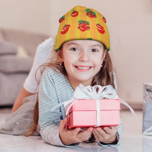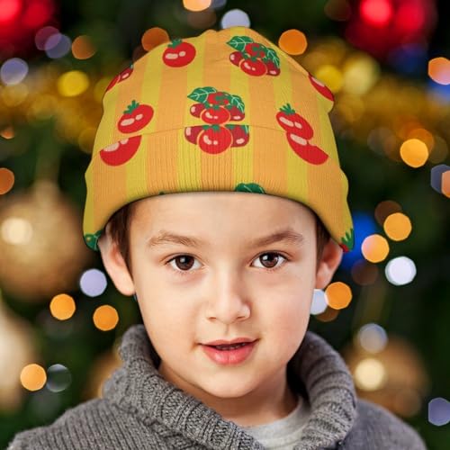 Tomato Fruit Pattern Kids Beanie Hat for for Girls Boys Children Cap Winter Knitted Chemo Cancer Headwear Accessories Gifts Decoration Black 7