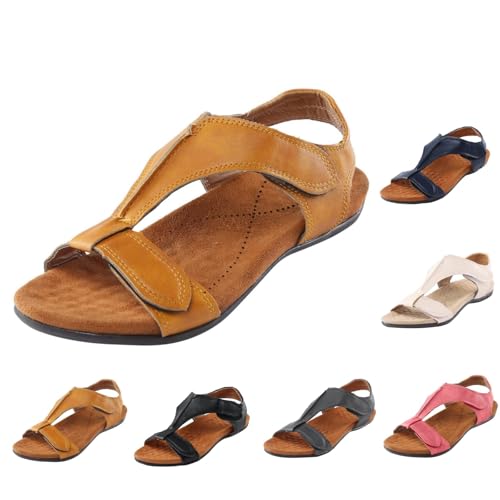 HOT ! Womens Sandals Arch Support T-Strap Orthopedic Flat Adjustable Comfortable T-Strap Walking Sandals Beach Shoes