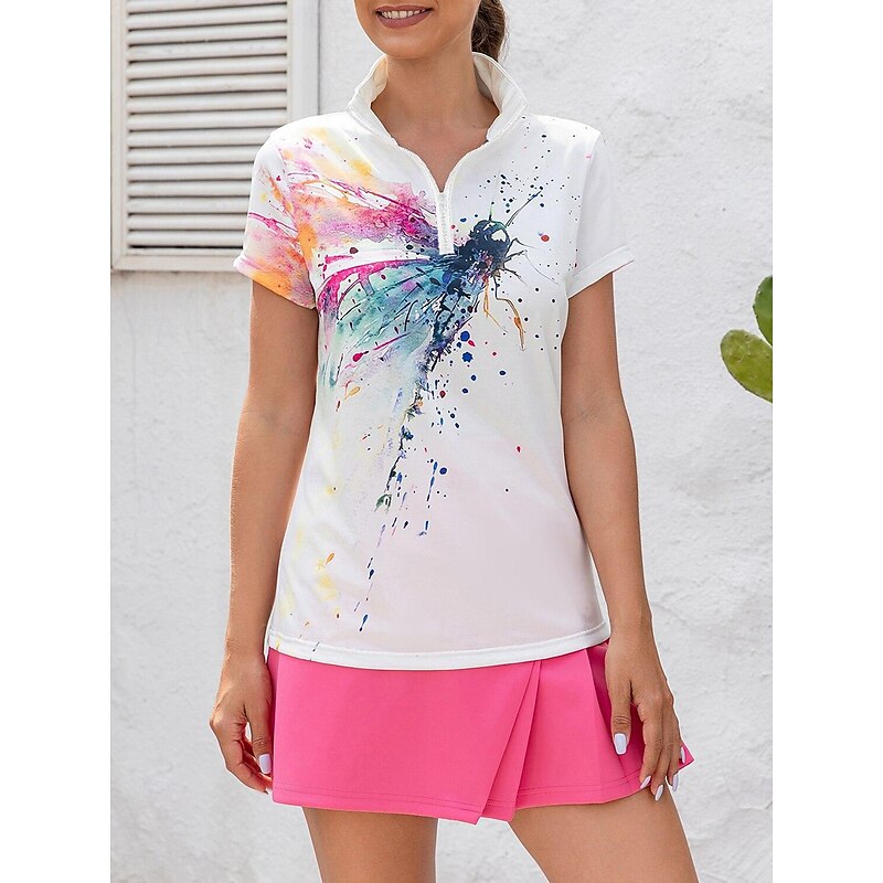 HOT ! Women's Golf Polo Shirt White Short Sleeve Sun Protection Top Tie Dye Ladies Golf Attire Clothes Outfits Wear Apparel