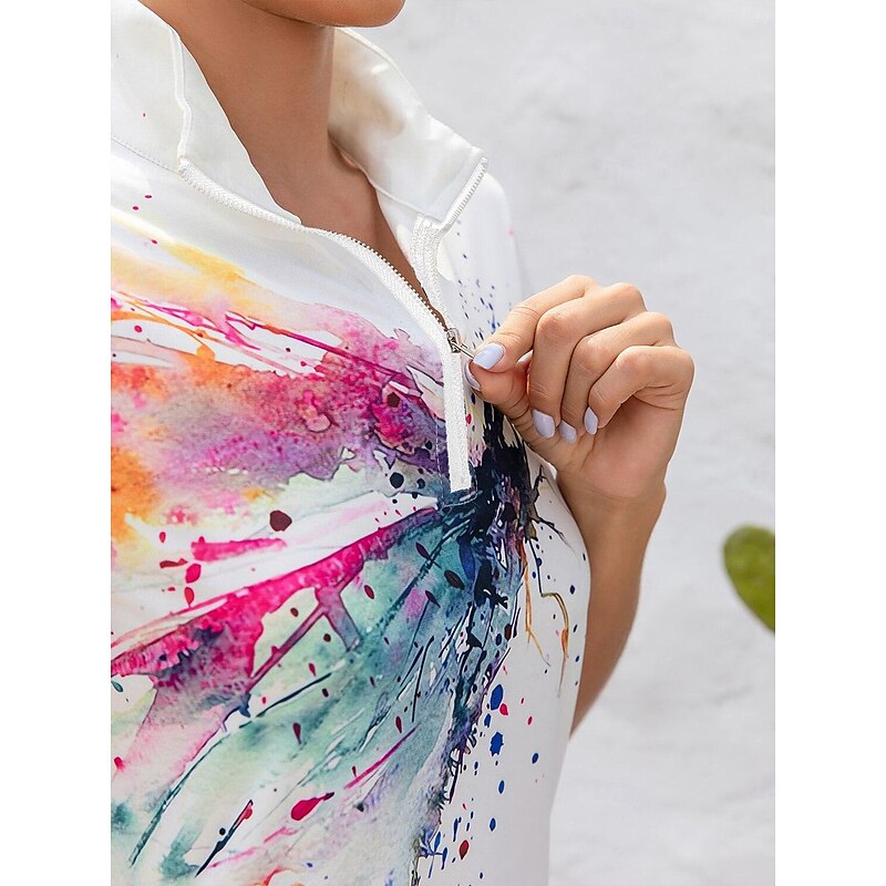 Women's Golf Polo Shirt White Short Sleeve Sun Protection Top Tie Dye Ladies Golf Attire Clothes Outfits Wear Apparel 1