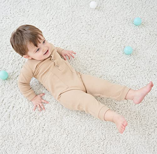 BeiVSlley Newborn Baby Boy Girl 2 Pack Button Solid Romper Infant Long sleeve Knit Cotton Footless Outfits Clothes