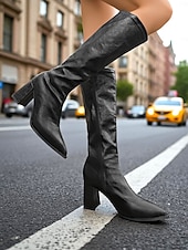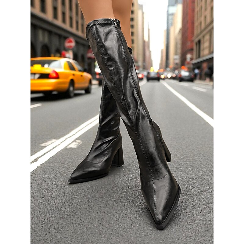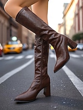 HOT ! Women's Brown Knee-High Boots - Faux Leather Pointed Toe Block Heel Long Boots for Street Style, Casual Fall Winter Outfits and Everyday Wear