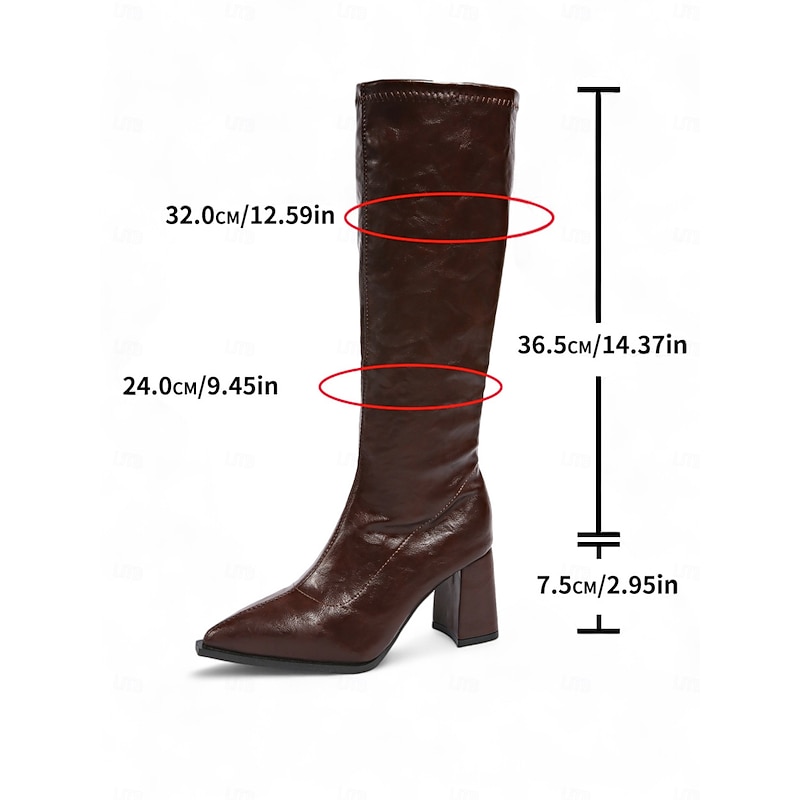 More information about Women's Brown Knee-High Boots - Faux Leather Pointed Toe Block Heel Long Boots for Street Style, Casual Fall Winter Outfits and Everyday Wear