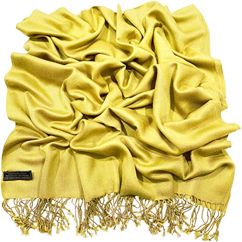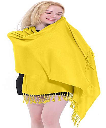 CJ Apparel Yellow Solid Color Tassels Design Nepalese Shawl Scarf Wrap Stole Throw Head Wrap Pashmina Hand Made in Nepal New 2