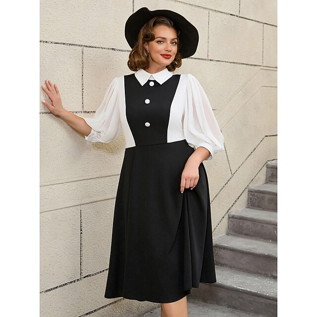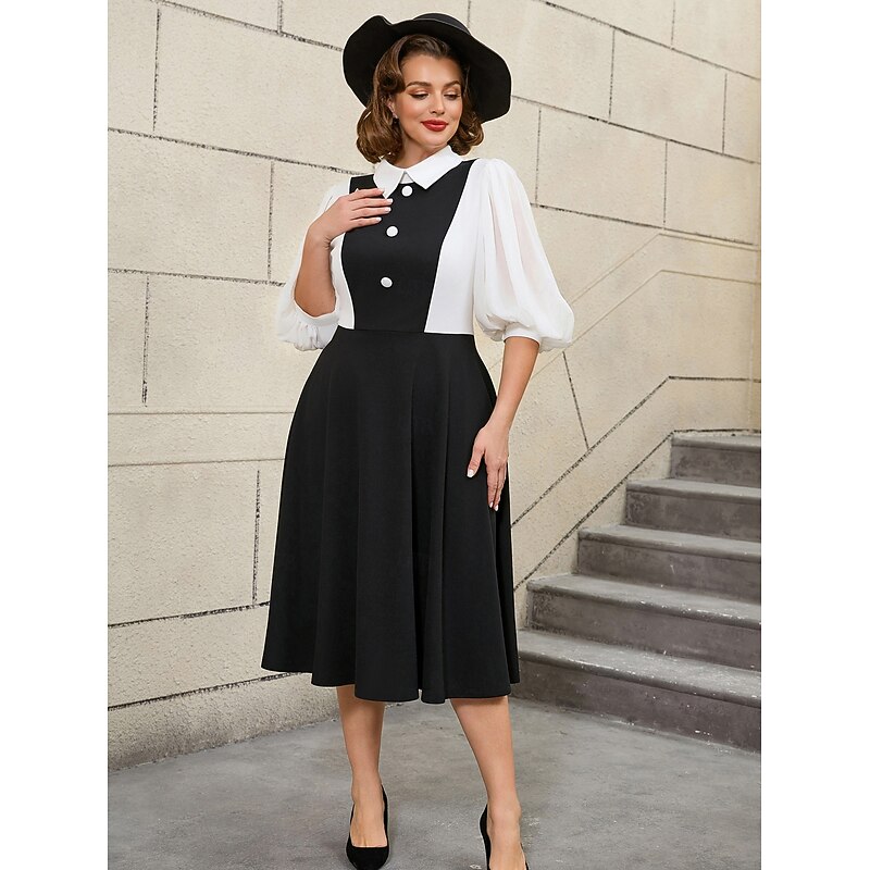 Why Choose Retro Vintage 1950s Rockabilly Midi A Line Dress Flare Dress A-Line Fancy Dress Women's Vacation Office / Career Party & Evening Adults' Dress Spring & Summer?