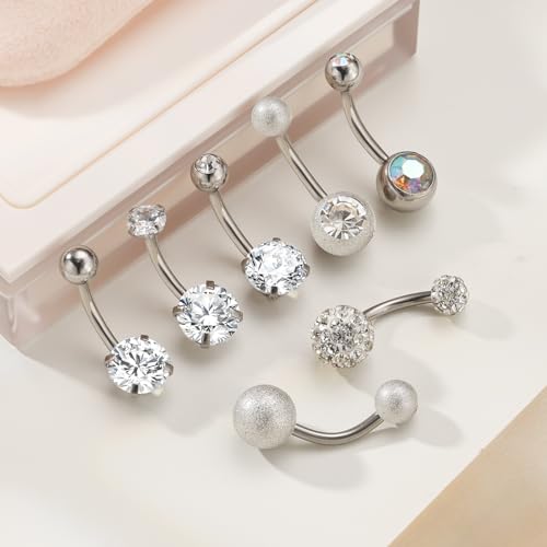 Wssxc 14G Hypoallergenic Surgical Steel Belly Button Ring Cubic Zirconia Belly Button Barbs Body Piercing Set 7Pcs 6