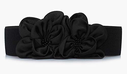 HOT ! Women's Very Soft Waist Belt Rose Double-Flower Elastic Cinch Wide Stretch Corset for Belt Wedding Dress
