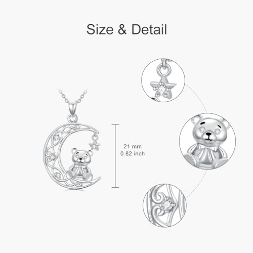 Lab Grown Diamond Moon Star/Bear/Cat/Butterfly/Dog/Rabbit/Hummingbird Necklace, 925 Sterling Silver Moon-Shape Animal/Sun/Heart Pendant Gift for Women 5