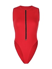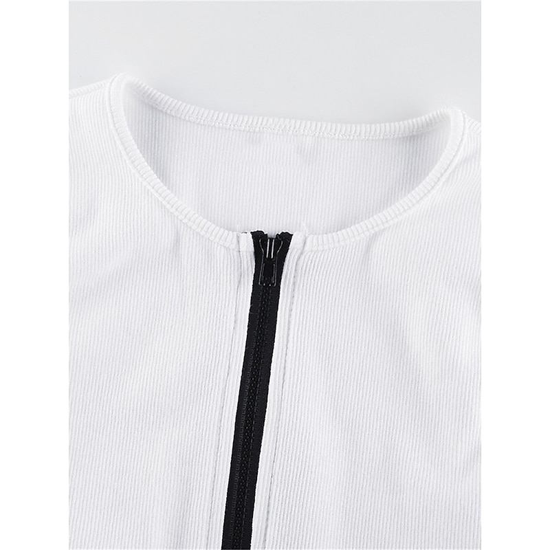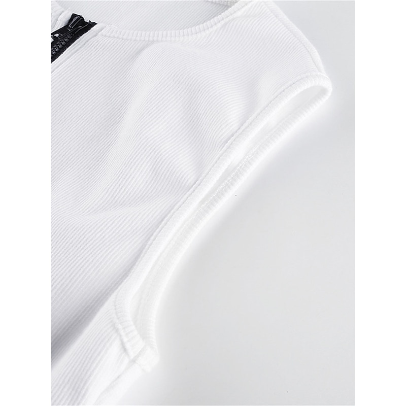 More information about Women's Workout Bodysuit Zipper Solid Color Crew Neck Streetwear Street Daily Loose Fit Sleeveless Black White Red S M L Summer Fall Gym