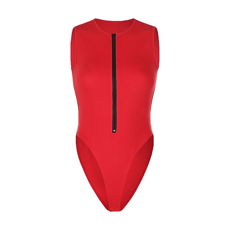 Women's Workout Bodysuit Zipper Solid Color Crew Neck Streetwear Street Daily Loose Fit Sleeveless Black White Red S M L Summer Fall Gym