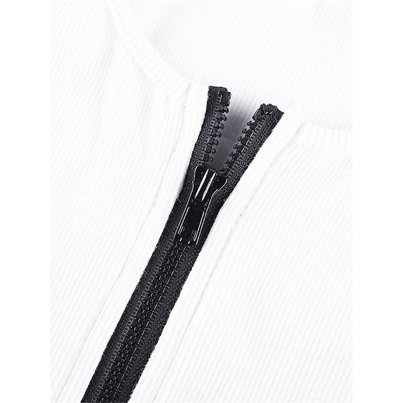 : Featuring a bold front zipper and a classic crew neck, this bodysuit exudes a modern edge. The sleeveless cut with broad shoulder straps adds a contemporary touch, while the vertical ribbing pattern provides subtle texture and sophistication.