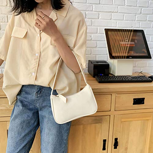 Shoulder Bag for Women Retro Leather Classic Tote Handbag Mini Clutch Purse with Closure (White) 5