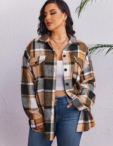 HOT ! Zeagoo Women's Plus Size Flannel Plaid Shacket Button Down Flannel Shirts Long Sleeve Casual Fall Jacket 2024