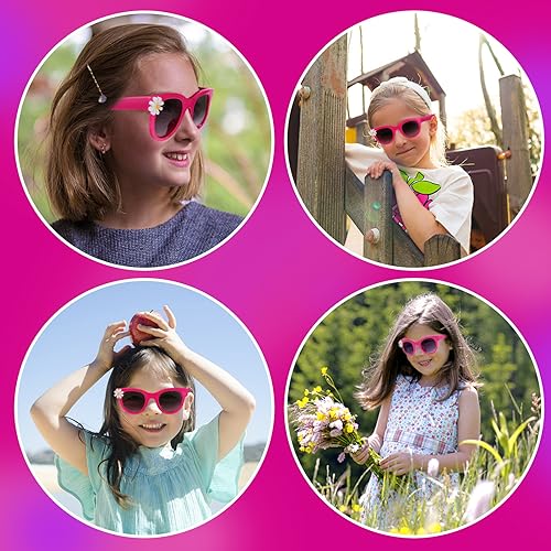 XINBO LOOK Kids fashionable Pink Sunglasses With Floral Decoration, for Kids Age 3-10, Toddler Sunglasses Girls UV Protection 6