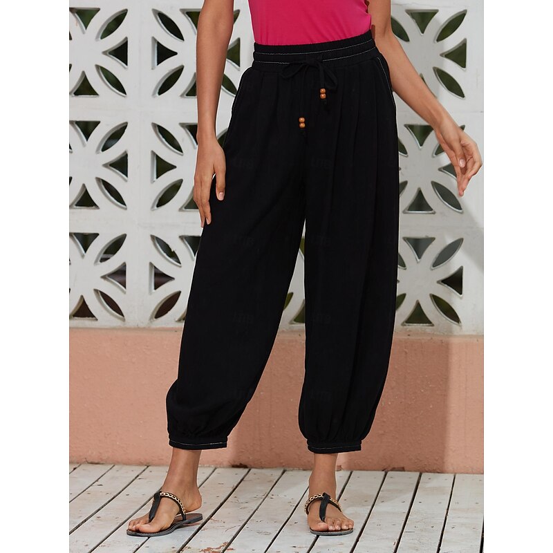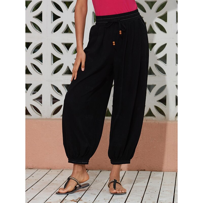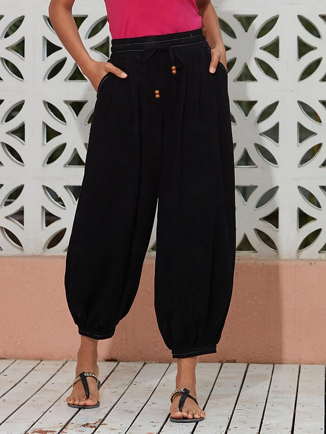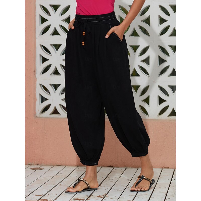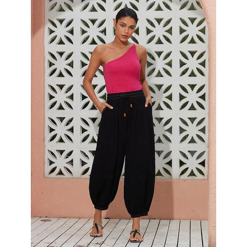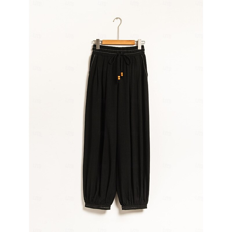 $82.99 - Women's Linen Black Loose Pleated Adjustable Drawstring Dhoti Pants with Pockets 2025. Shop for cheap Pants online? Buy at lightinthebox.com on sale today!