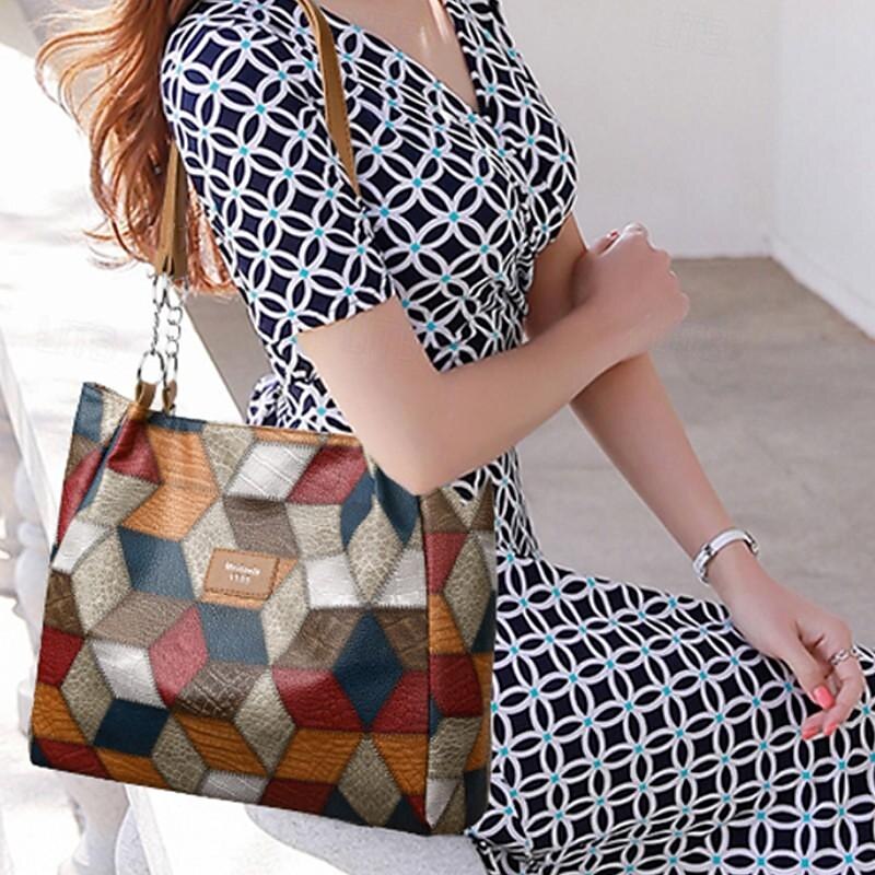 $24.99 - Women's Shoulder Bag PU Leather Shopping Holiday Zipper Large Capacity Geometric Black 2025. Shop for cheap Handbag & Totes online? Buy at lightinthebox.com on sale today!