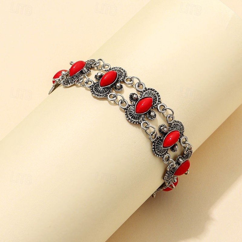 More information about Women's Bracelet Retro Flower Bohemian Alloy Bracelet Jewelry Red / Green For Daily Holiday